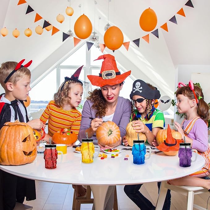 - Unique Design: This Halloween Cups Set of 4 features a skull mason jar design, adding a spooky and stylish touch to your Halloween party or bar decor. The skull jar with its intricate details is sure to catch everyone's attention.