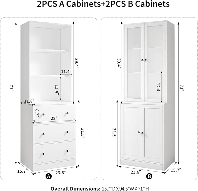 - DIY Your Cabinets: Customize your storage space with 3 drawers, 3 open shelves, 2 hidden shelves, and 3 shelves with glass doors. Perfect for bookcases, kitchen shelves, and display cabinets.