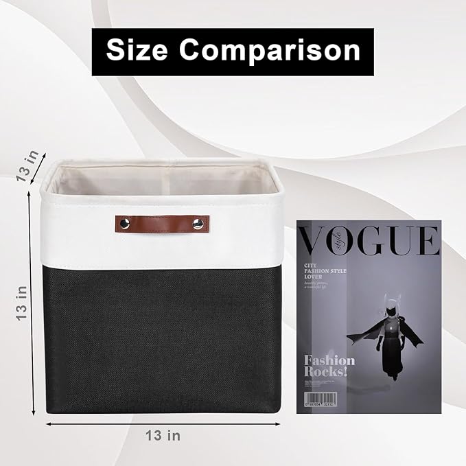 13x13 Cube Storage Bins, Collapsible Fabric Storage Box, 4 Pack Closet Baskets with Handles for Organizing, Shelf, Toys, Clothes, Home, Office, Nursery (Black&White)