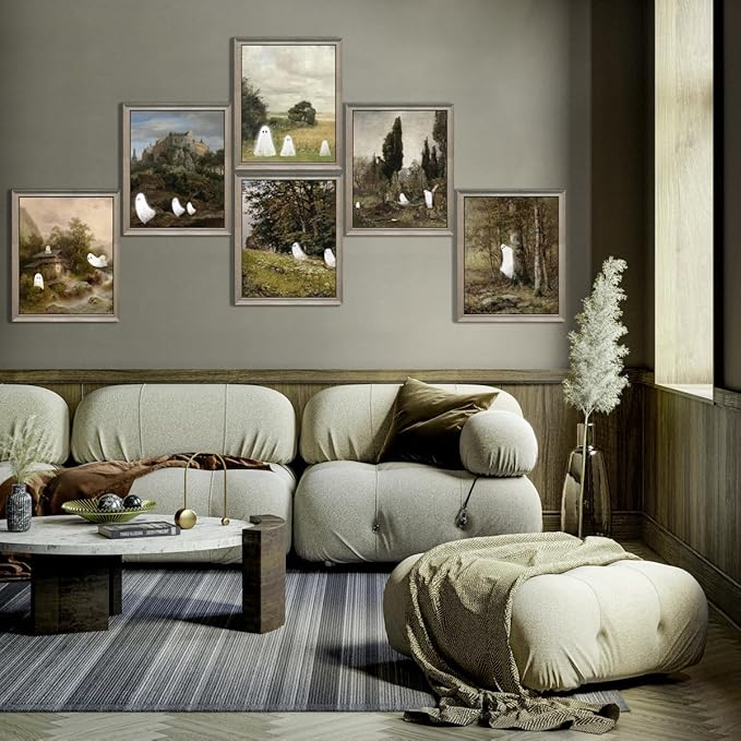 • Ghost Decor: LANCHI95 room decoration paintings are made of high-quality 300gsm paper with a matte layer on the surface, making the wall posters resistant to water and dust. The colors of the painting are perfect and sharp. Explore our captivating "Ghost Wall Art" collection of 6 Pcs 8x10-inch. These eerily stunning works of art embrace the aesthetics of dark academia, lending an air of mystery and elegance to your space.