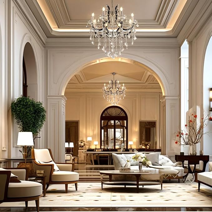 - Crystal Chandelier: Hand-picked high quality K9 crystal for this foyer crystal chandelier. The body of this black crystal chandelier is made of thick aluminum and will not rust.Chandeliers for high ceilings has a unique design that is both modern and classic, adding the finishing touch to your home remodel