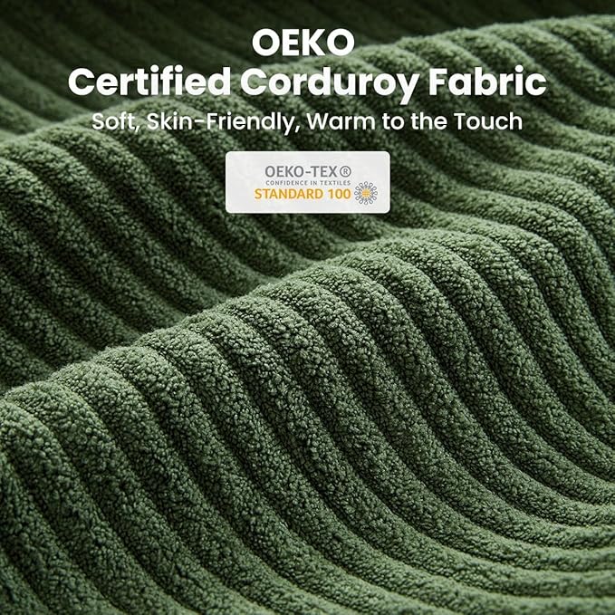 Pull Out Sofa Bed, Full Size Sleeper Sofa, 2-in-1 Convertible Corduroy Couch with USB Charging, Memory Form Couch for Living Room, Apartment and Small Space (Green, Corduroy - Queen Size)