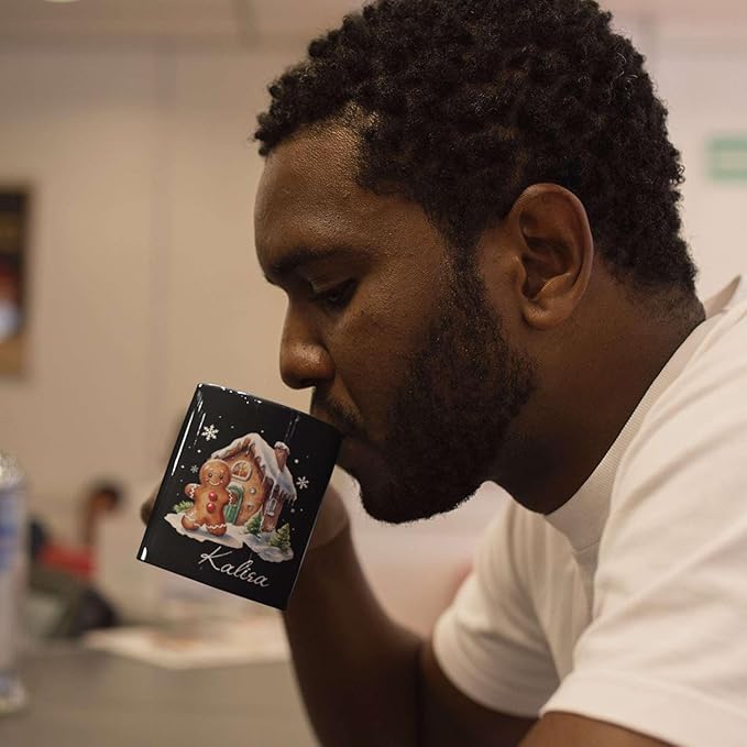 - 💝 UNIQUE DESIGN MUG: Celebrate the magic of Christmas with this "Personalized Christmas Gingerbread Black Cup" showcasing a delightful gingerbread house design. Click "Customize Now" to add a name, creating a special holiday gift for friends and family. Ideal for sipping hot cocoa or coffee during the winter season.