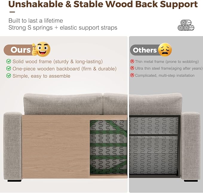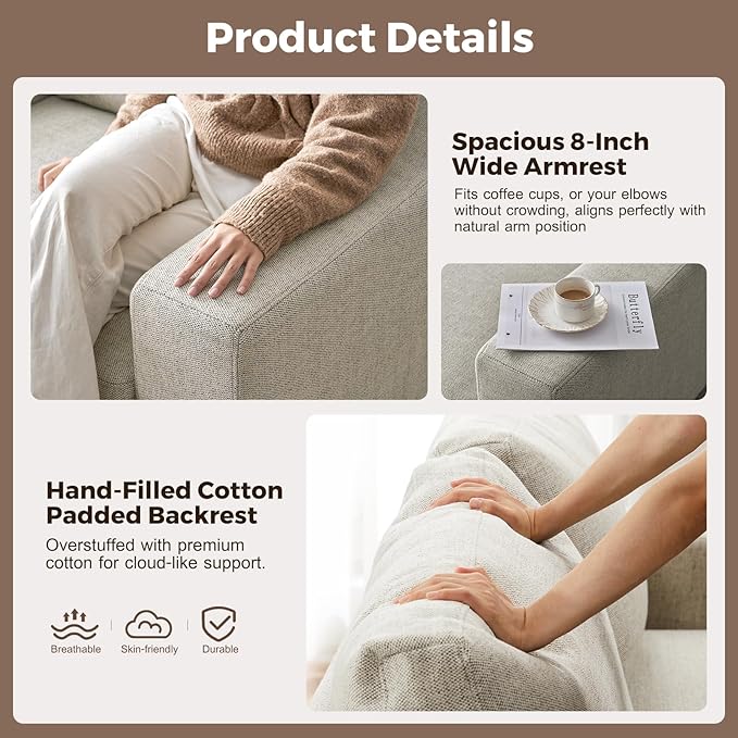 - HIGHER AND THICKENED SEAT - The seat height of the sofa is 18 inches, in comparison to similar products on the market, we have increased the height by approximately 25% in comparison to them.The seat cushion is 7 inches thick and made of high-quality foam with high-grade spring padding. It provides both support and a comfortable seating experience, with a medium firmness level (3 out of 5).