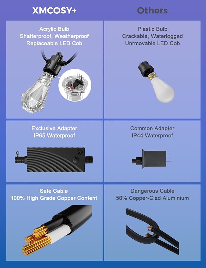 - Smart App & Voice Control: Manage your patio string lights with XMcosy App, link with Alexa & Google Home, or set an auto timer. Control with one tap or one command, add a specious lighting for yard, porch, gazebo, balcony, bistro, or garden.