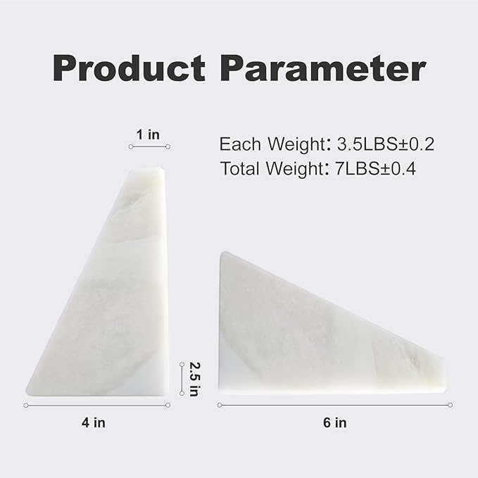 - NATURAL MATERIAL: The heavy duty marble bookend weight 7LB and are equipped with 4 non-slip pads to effectively minimize scratches on your desktop. Make your reading time more relaxing and ensure the safety of you and your family with this stone book holder.