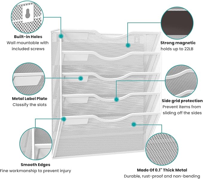 - Durable Metal Construction: Crafted from high-quality metal with an attractive mesh wire design, this magnetic hanging file organizer features a durable powder coat finish that is resistant to oxidation and rust. Please exercise caution when removing the product from an iron surface due to its strong magnetic force.