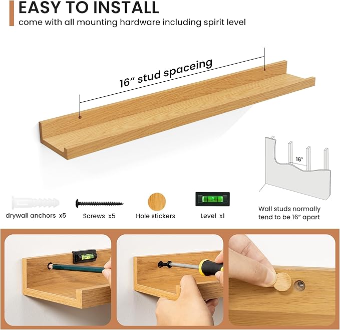- Effortless Installation: Each shelf comes with pre-drilled holes and all necessary hardware, making installation quick and easy, so you can enjoy your new decor in no time.