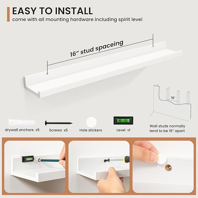 - Effortless Installation: Each shelf comes with pre-drilled holes and all necessary hardware, making installation quick and easy, so you can enjoy your new decor in no time.