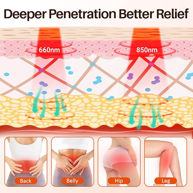 - Pro-Grade Red Light Therapy Pad: The red light pad has 242 lamp beads with each having 2 chips( visible 660nm red light and 850nm invisible near infrared light). 660nm-red light can be absorbed by surface tissues; 850nm-near infrared light can penetrate into deeper tissues to relax muscles tension and joint stiffness, relieve pain and sooth soreness.