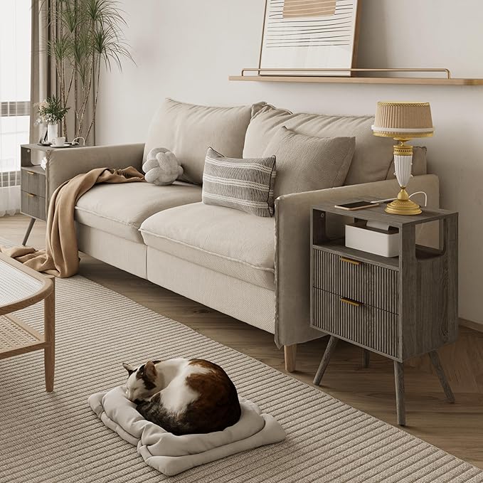 - Embrace the modern touch: A grey oak vertically textured faucet, this nightstand gives off a modern touch in your bedroom. With a row insert makes it more practical, the atmosphere lamp is a good addition to the fun of life, it can also be used as a side table or coffee table for the whole family to attract attention, adding elegance to family life.