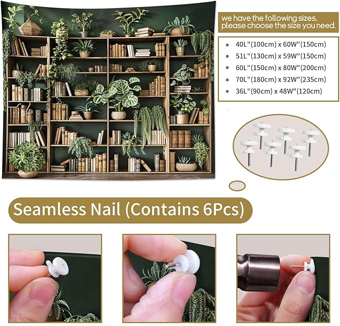 - DESIGN :The Bookshelf Tapestry adopt HD digital printing,Don’t worry about fading,vibrant colorful design will light up your room!