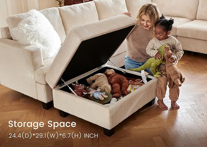 - Storage Ottomans: Includes 2 large storage ottomans, each measuring 29.1" x 24.4" x 6.7". Perfect for keeping toys, blankets, books, and other items neatly organized