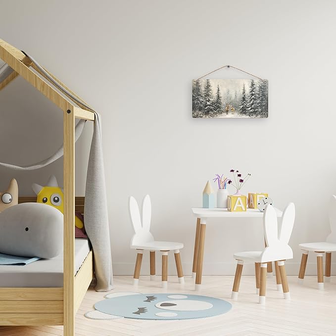 Winter Pine Tree Deer Wooden Sign, 12x6 inches, Rustic Wall Decor for Home, Office or Gifting