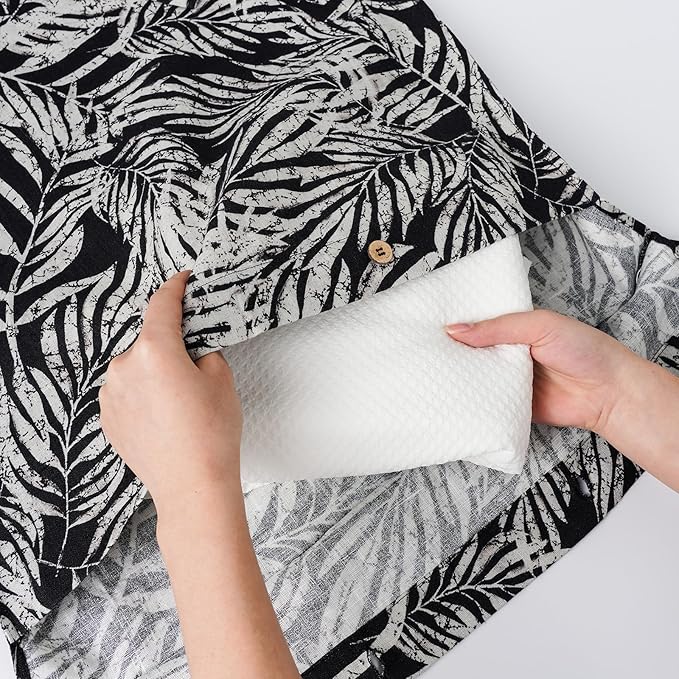 Linen Hanging Laundry Bag, 100% Linen Leaf Print Over The Door Laundry Hamper with Buttons and Zipper, Space Saving Door Hampers for Laundry Dirty Clothes Home Travel, Black, 19.7x27.5inches