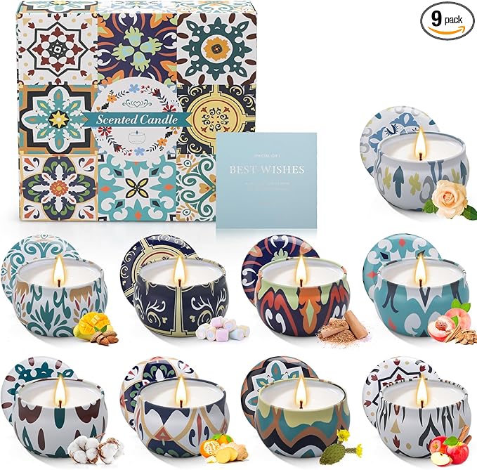 Candles Gifts for Women, 9 Pack Candles for Home Scented, Soy Scented Candle for Home, Aromatherapy Candle Gifts Set for Christmas, Birthday, Mothers Day, Valentine's Day