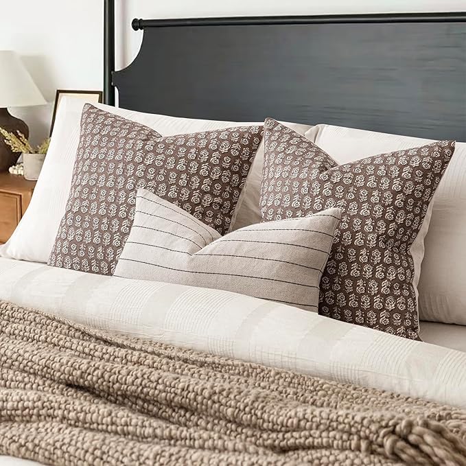 Foindtower Set of 2 Decorative Neutral Floral Print Throw Pillow Covers Vintage Accent Farmhouse Cushion Covers Boho Home Decor for Sofa Chair Couch Bedroom Living Room,18×18 Inch,Brown