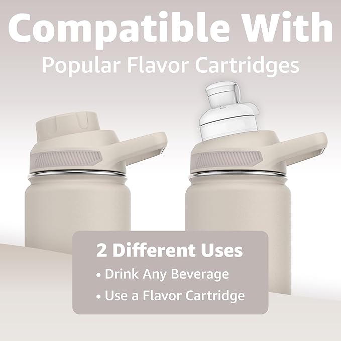 Chill Oasis Water Bottle | Compatible With Popular Flavor Cartridges | BPA Free, Leak Proof, Double-Walled Vacuum Insulated Stainless Steel, and Dishwasher Safe | Cold for 24 Hours (Beige, 12oz)