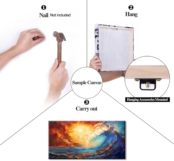 - 【Convenient to Use for Canvas Paintings 】- This abstract artwork comes with pre-installed hooks on the back for you to conveniently hang it on the wall, and it is easy to remove when not in use;The hanging design can save you the trouble to use adhesive and prevent the wall from being stained by glue and leaving marks.