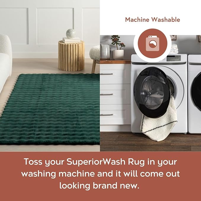- Machine Washable: When that inevitable “oops” happens, simply place your area rug in the washing machine with cold water on the gentle cycle (do not use bleach). We recommend line drying your rug or without heat on the air-only drying cycle.