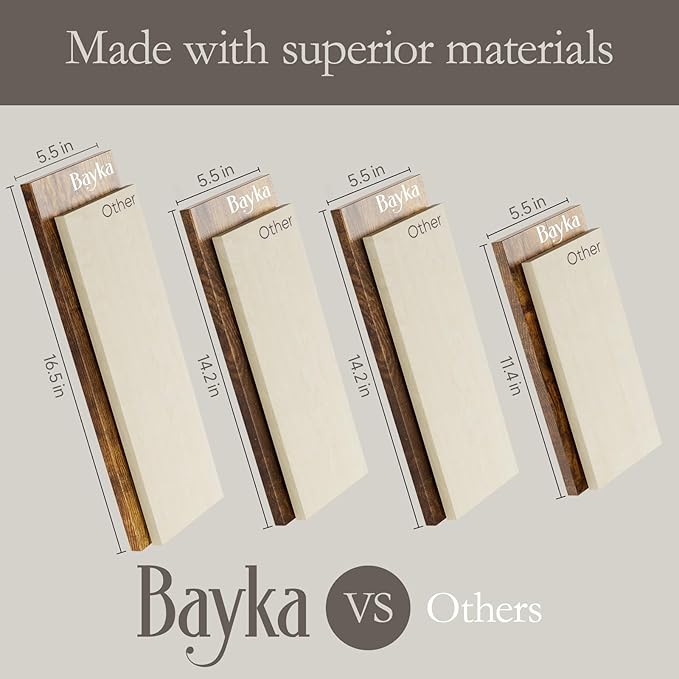 - **Three different size Floating Shelves for All** : Large: 16.5 × 5.5 × 4.6 inches; Medium: 14.2 × 5.5 × 4.6 inches; Small: 11.4 × 5.5 × 4.6 inches. These floating shelves are wider and sturdier than others to safely hold collectibles, photos, small plants and showcase favorite dishes or build your own coffee bar. Easy to assemble with all necessary hardware included according to the instruction steps.