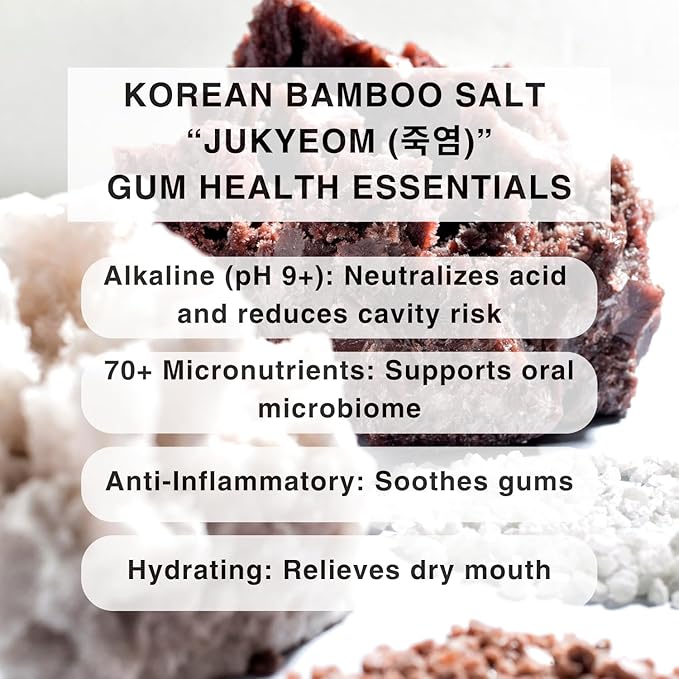 - EXCELLENT FOR ORAL MICROBIOME: Korean Bamboo Salt (Jukyeom) is antimicrobial, anti-inflammatory, rich in micronutrients, and stimulates saliva production. It neutralizes mouth acidity and balances pH, creating an ideal environment for a healthy oral microbiome.