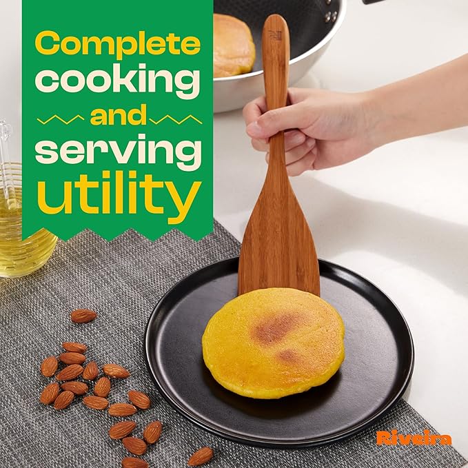 - Versatile and Eco-Friendly Brown Bamboo Utensils – Our kitchen utensil and wood spoons are made from environmentally friendly brown bamboo, which is long-lasting and sustainable. The wood cooking utensils set is designed for all cooking styles, offering tools for stirring, serving, and flipping. These wooden utensils for cooking are perfect for non-stick cookware, providing a scratch-free experience. These wood cooking utensils make a great addition to your kitchen.