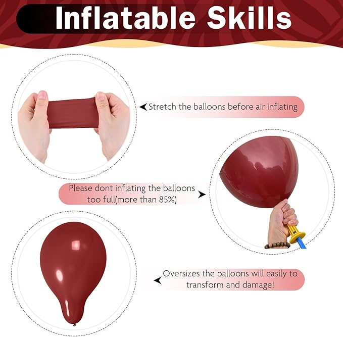 - Thick Material: Our latex balloons 12 inch are crafted from thick, non-toxic latex, ensuring they maintain their shape and vibrant colors for an extended period after inflation; Elevate your party with our vibrant helium balloons set ideal for burgundy balloon arch kit