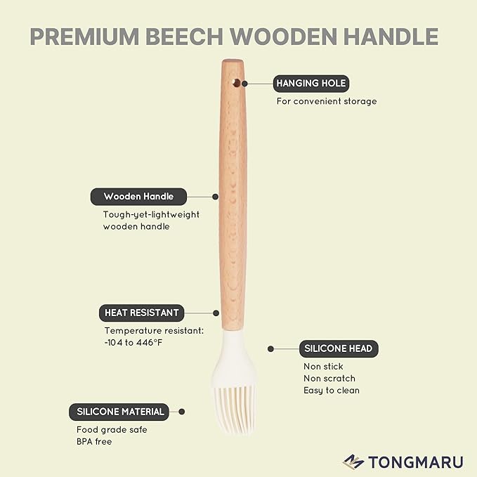 - ERGONOMIC, STURDY, LIGHTWEIGHT – Right combination of superior materials (silicone and premium beech wood) will enhance your enjoyable cooking experience. Firm handles, ergonomic design. All easy to use, store & clean.
