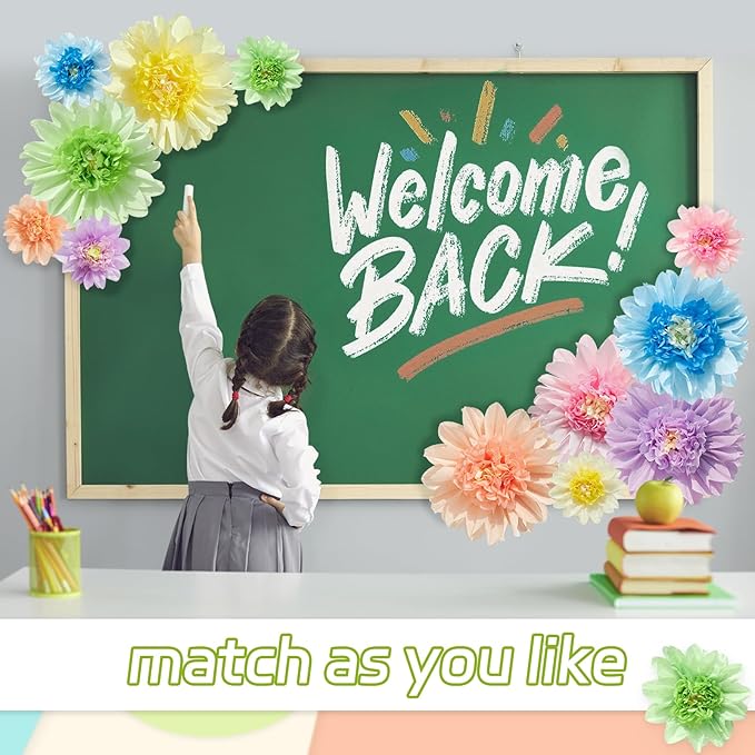 - Variety & Quality Materials - Includes 6 pieces of 12-inch flowers made of thick, textured crepe paper for added support and elegance, along with 6 delicate 6-inch flowers crafted from soft tissue paper for a balanced and versatile decor set.