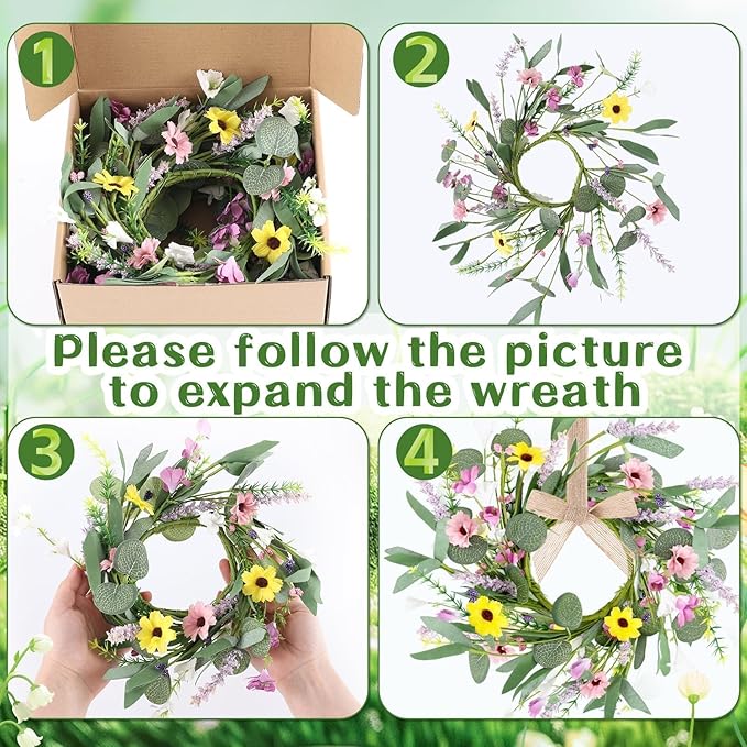 - Spring and Summer Wreath:This summer wreath is suitable for front door, wall, window, porch and farmhouse decor.It is also a nice gift for your family and friends.The spring wreath will be a great addition to your spring and summer decor.