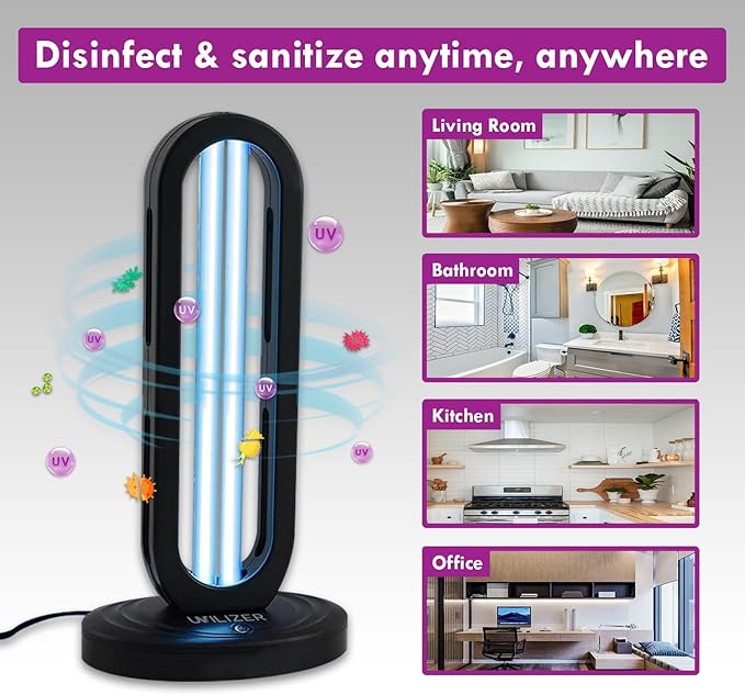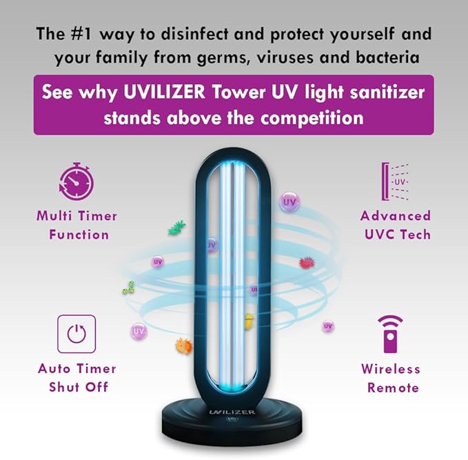 - EFFECTIVE 99.99% SANITIZATION --- Featuring UVC technology and a powerful 38W ultraviolet disinfection lamp, the UVILIZER Tower is the best way to sanitize and protect yourself, your family and your stuff from harmful germs, bacteria and viruses.