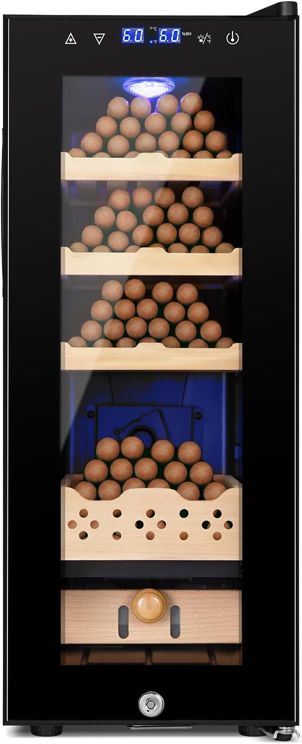 - Capacious Elegance: With a large 35L capacity accommodating up to 250 cigars, this desktop electric cigar humidor is your ultimate storage solution for a robust collection.
