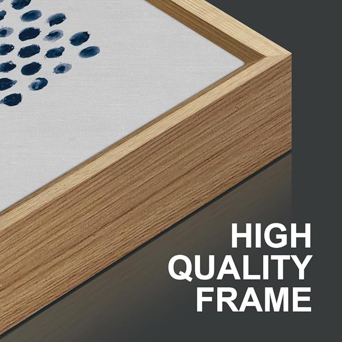 Tinonedraw Navy Blue White Framed Canvas Wall Art Set, Modern Geometric Dots Line Wall Decor, Neutral Abstract Shape Artwork, Cozy Contemporary Art Prints for Bedroom Living Room Office 16"x24"x3