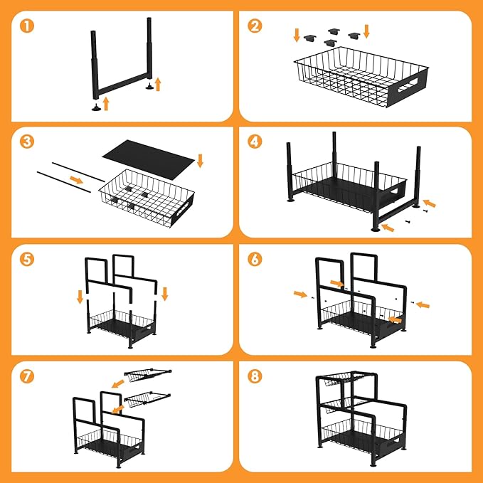 - Sturdy and Load-bearing: The seasoning organizer is made of solid metal and coated with black rust-resistant paint. Overall dimensions are 16.54 “L x 11.81 ‘W x (17.05’-19.37”)H, 11 lbs load per layer.