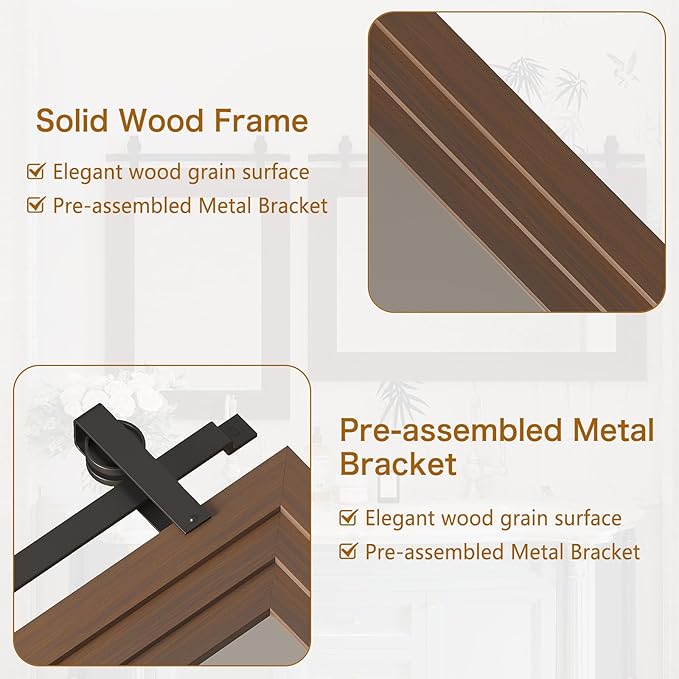 - 【Premium Solid Wood Frame】The frame of the farmhouse mirror is made of premium fir wood with oil-based paint to prevent scratches and ensure durability and resistance to moisture. The solid wood frame gives the rustic mirror a sturdy and authentic look, adding a touch of farmhouse appeal to the bathroom, living room, powder room, entryway, hallways, bedroom, dressing room, garden, courtyard, etc.