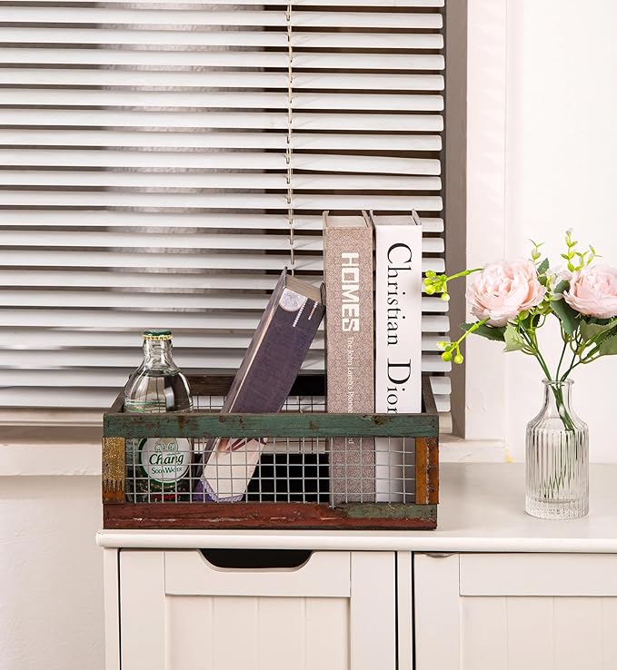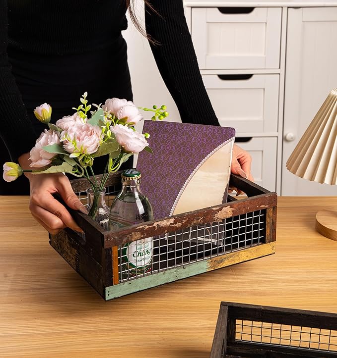 - SUPERIOR QUALITY – Crafted from solid reclaimed wood with wire mesh structure, these countertop crates are sturdy and durable that suitable for long-term use in your family. They are stackable and nested for easy storage and save your space, they can even be used in the drawers or on the walls.