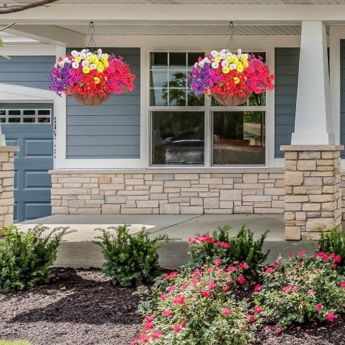 - 🟢 All-Occasion Decoration: These artificial outdoor hanging flowers basket are perfect for garden, porch, patio, balcony, yard, home, front door, and outside decoration. These artificial hanging flowers with a basket provide the beauty of real flowers without the need for maintenance.