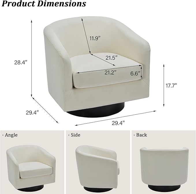 - 360 Degree Swivel Barrel Chair: This 360 degree round swivel chair designed for your leisure comfort. Heavy solid turntable, making it more stable and not wobbly