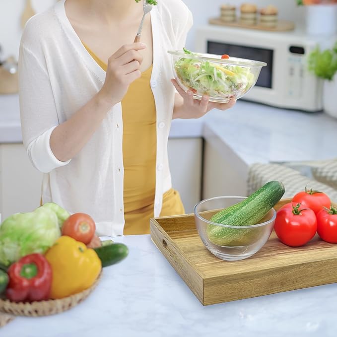- SERVE WITH STYLE: Acacia wood serving tray is versatile, serving food on dining tables, providing snacks on coffee tables, providing a lazy breakfast, or relaxing after a hard day.