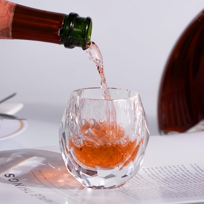 - Elegant Craftsmanship, Luxurious Touch: Elevate your whisky experience, our high-end wine glasses are meticulously handcrafted by accomplished artisans. The elaborate etching process allows them to capture and refract light in a mesmerizing way, , creating a sparkle over luster effect. Every time you hold the whiskey glasses, your fingertips will relish in a silky smooth texture
