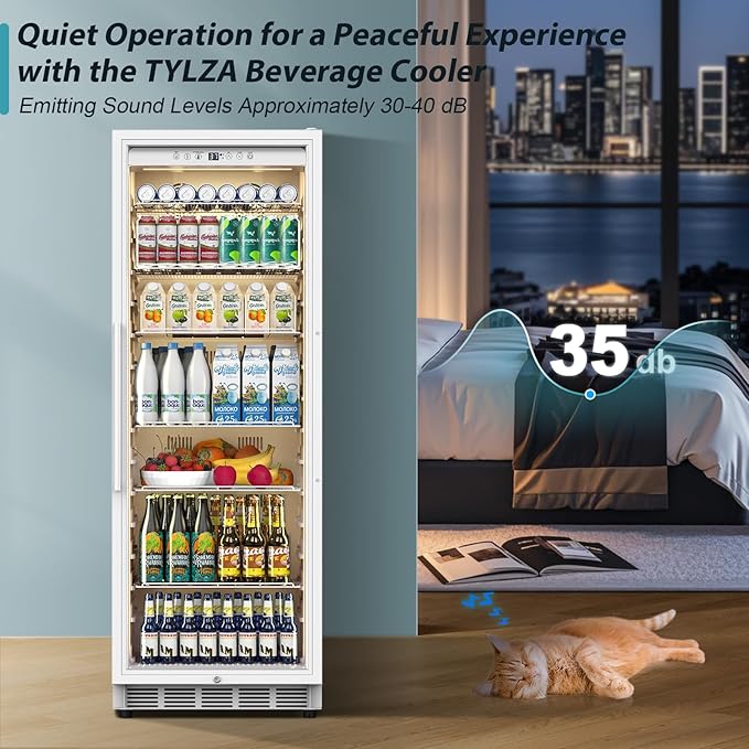 - 【Commercial Refrigerator】TYLZA glass door display refrigerator boasts a sleek pure white design complemented by white LED lighting, perfect for placement in your storefront, living room, or office lounge area, ensuring chilled beverages are always at hand