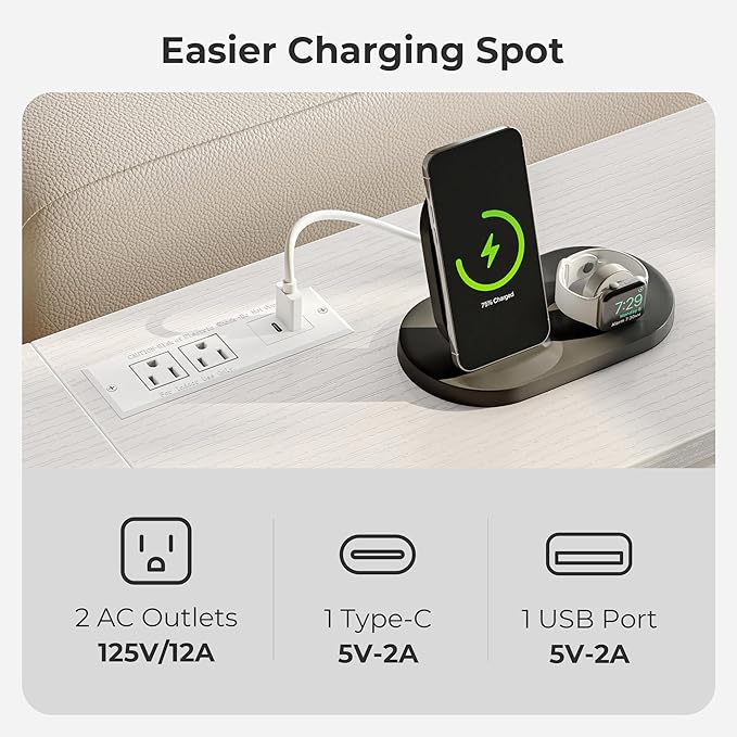 - 【Multiple Sofa back Charging Options】No more diving behind the sofa for an outlet! This sofa table features 2 AC outlets, 1 USB, and 1 USB-C port, perfect for charging your phone, lamp, speaker, or laptop right where you need it, whether behind your couch, in the hallway, or by the entry
