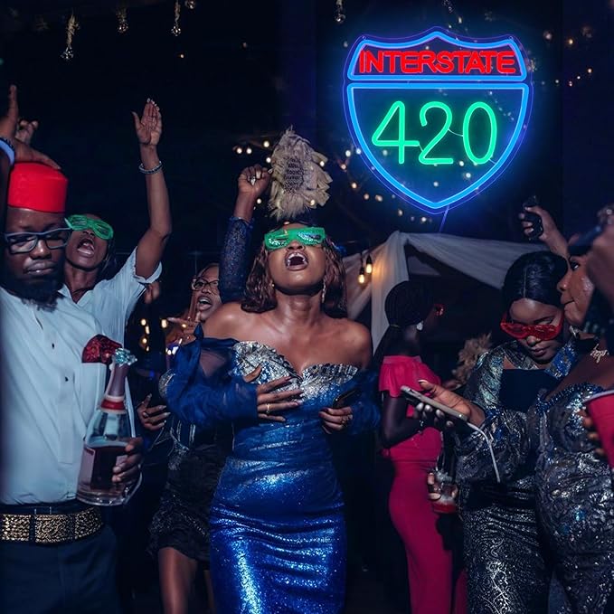 - Iconic 420 Theme Neon Sign - Capture the spirit of Interstate 420 with this distinctive neon sign, perfect for expressing your love for travel and Cannabis culture in a bold and stylish way.