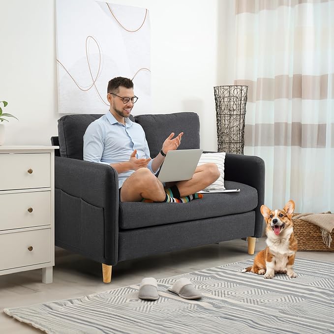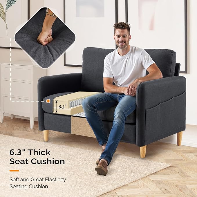 - Stylish Linen Material--Upholstered in high-quality linen, this loveseat offers a modern look and a soft touch, enhancing the aesthetic of any room while ensuring durability