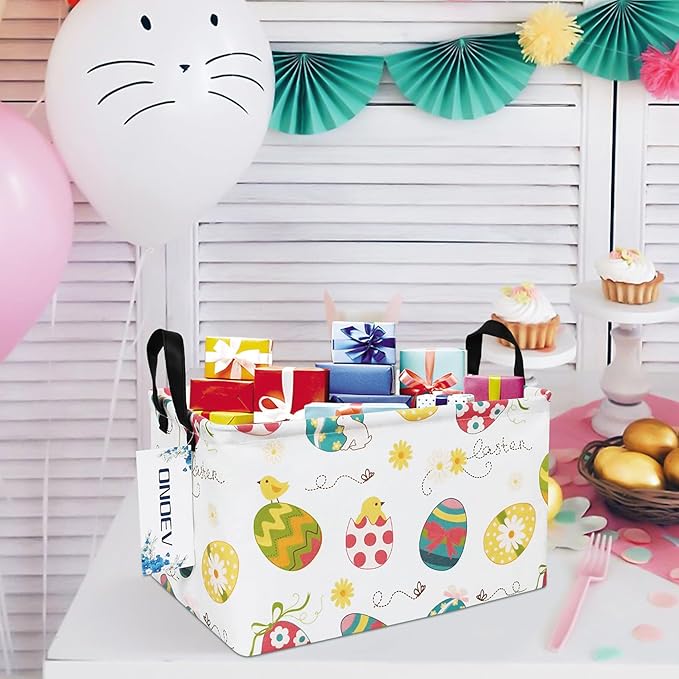 Rectangular Folding Laundry Basket,waterproof Canvas Basket,gift basket,Suitable for children's room,Office,Clothes,Toys Storage(Easter Eggs)
