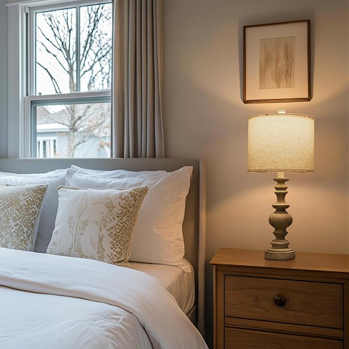 - 【Easy Rotary Switch Control】The convenient Rotary Switch allows for easy on/off control, putting the perfect ambiance at your fingertips. No complicated settings or buttons – just pure, simple functionality. Paired with a linen shade that diffuses light beautifully, it creates a warm, inviting glow, perfect for unwinding after a long day.