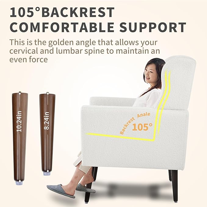 - Ergonomic Arm Chair with Back Pillow : The accent chair has breathable teddy fabric and extra back pillow can support your back better. Features a simple profile with a deep seat and lumbar support to provide ultimate comfort make it a great choice for your living room bedroom and office spaces