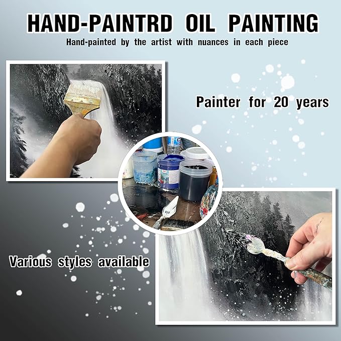 - 【Canvas Mural Size】Titled "Black and White Waterfall" The size is 60" x 30". Since each painting is hand-painted, the actual painting may differ slightly from the product image. Due to different monitor brands, the actual wall painting color may be slightly different from the product picture.