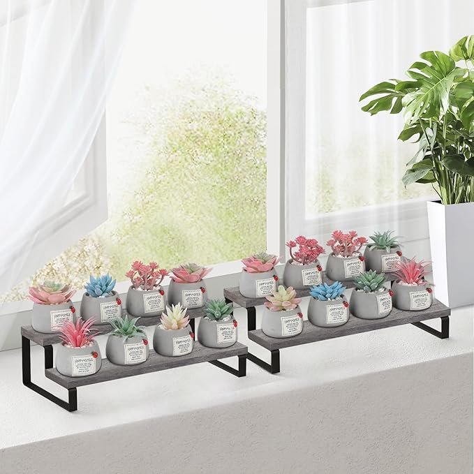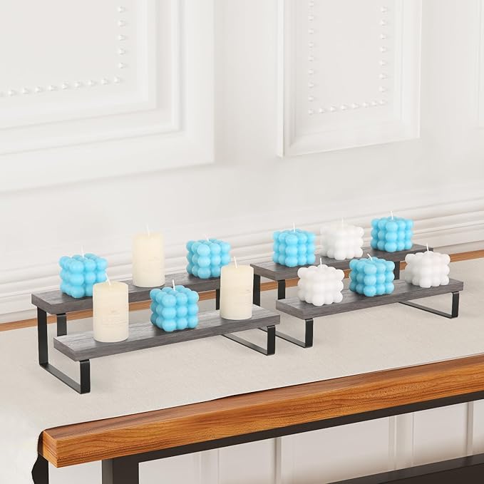 - Convenient Design: The stepped design makes efficient use of your counter space. This wooden display riser is a great idea for displaying toy figurines in cabinets, celebrating party desserts, and cosmetics on the dresser. The raised tiers help to create an eye-catching feature for your items.
